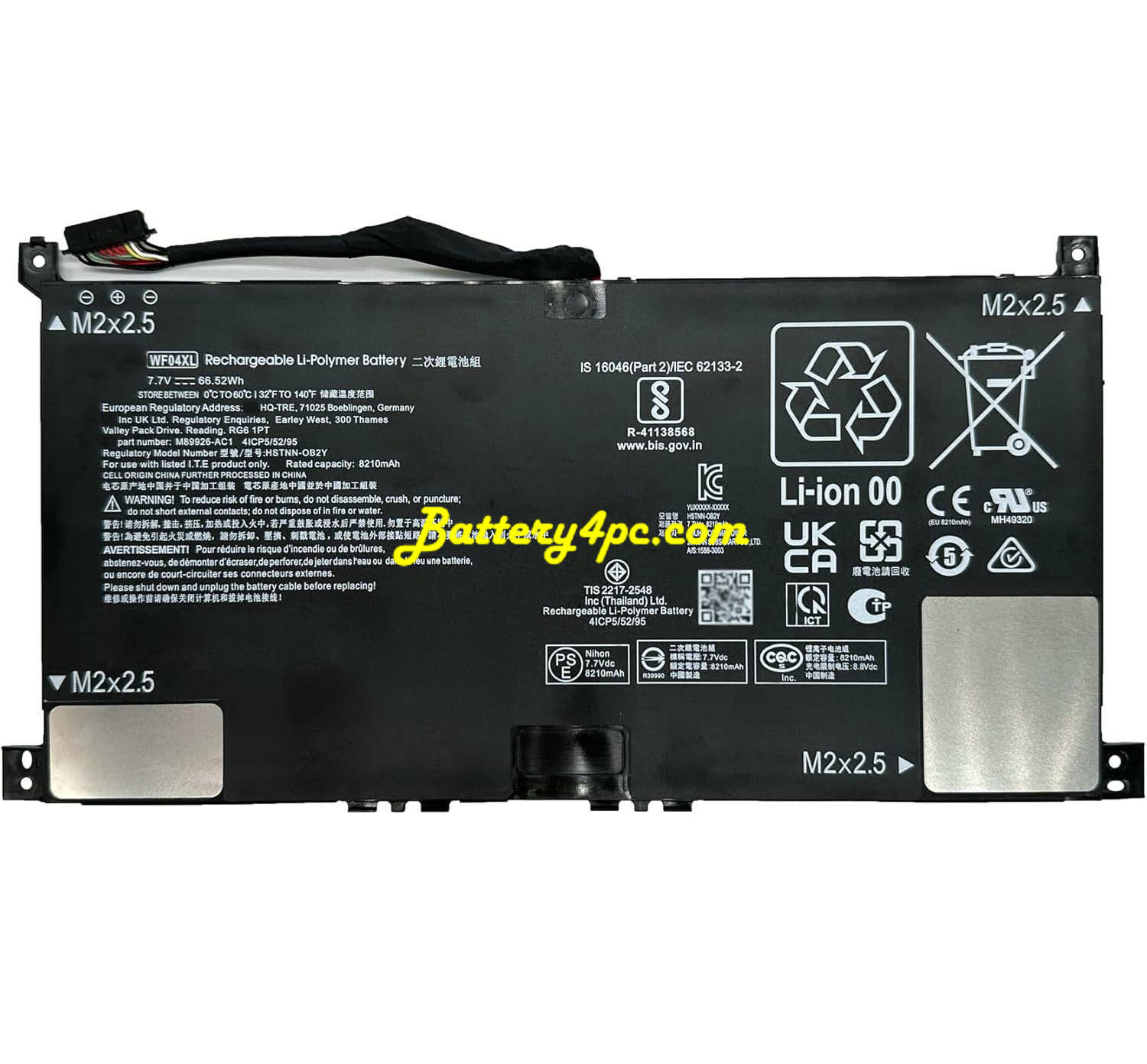 【Specifications】 Battery Model: WF04XL / Voltage: 7.7V / Capacity: 66.52Wh 8210mAh 4-Cell / Color: Black /