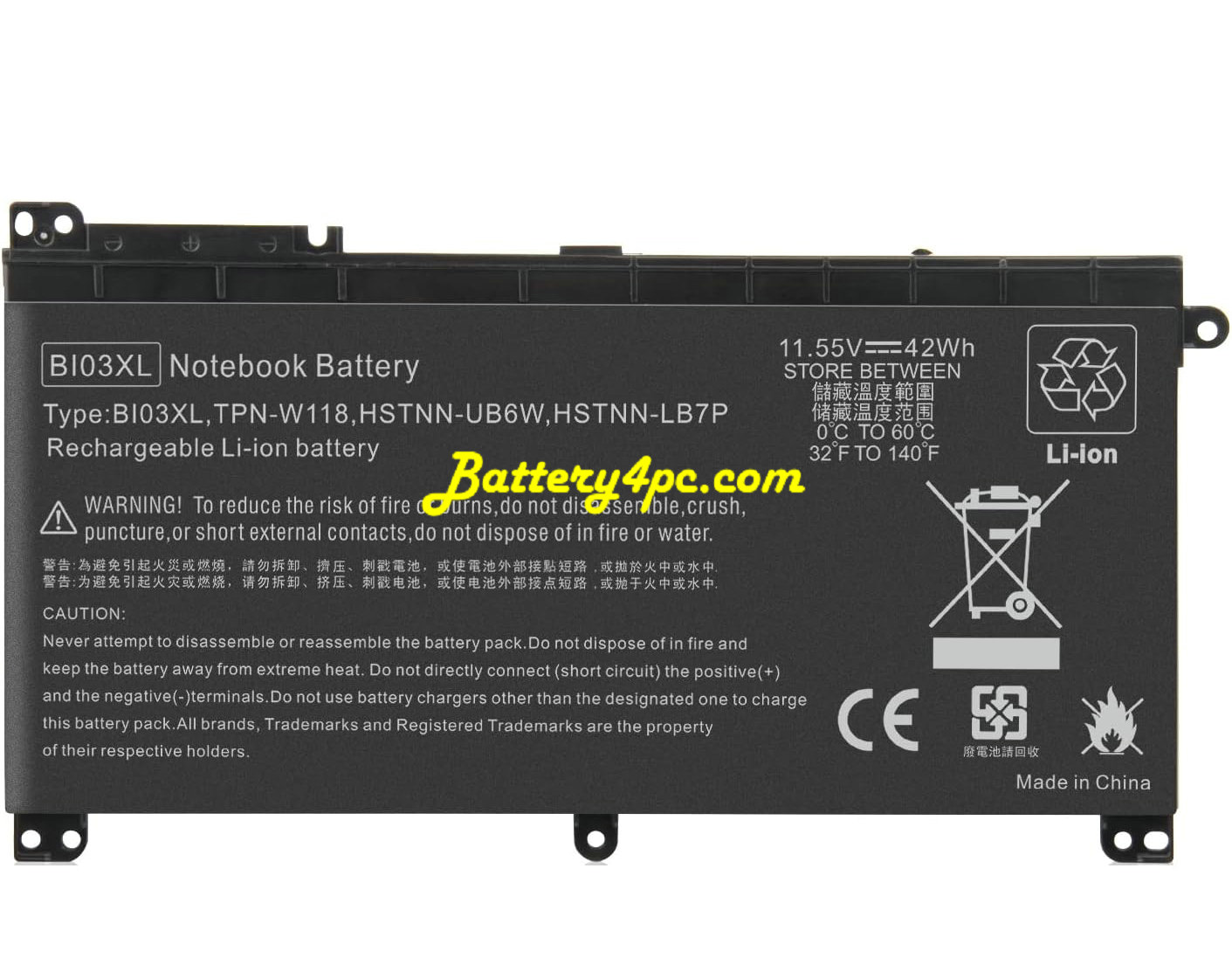 Model: HSTNN-UB6W;Battery Voltage: 11.55V Capacity: 42wh.