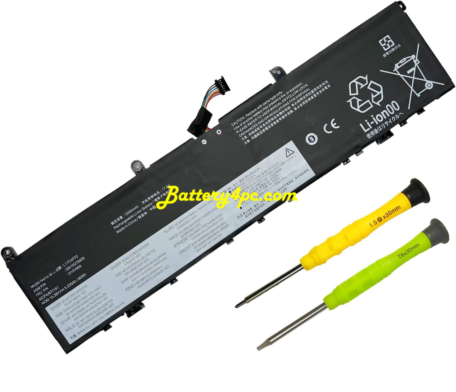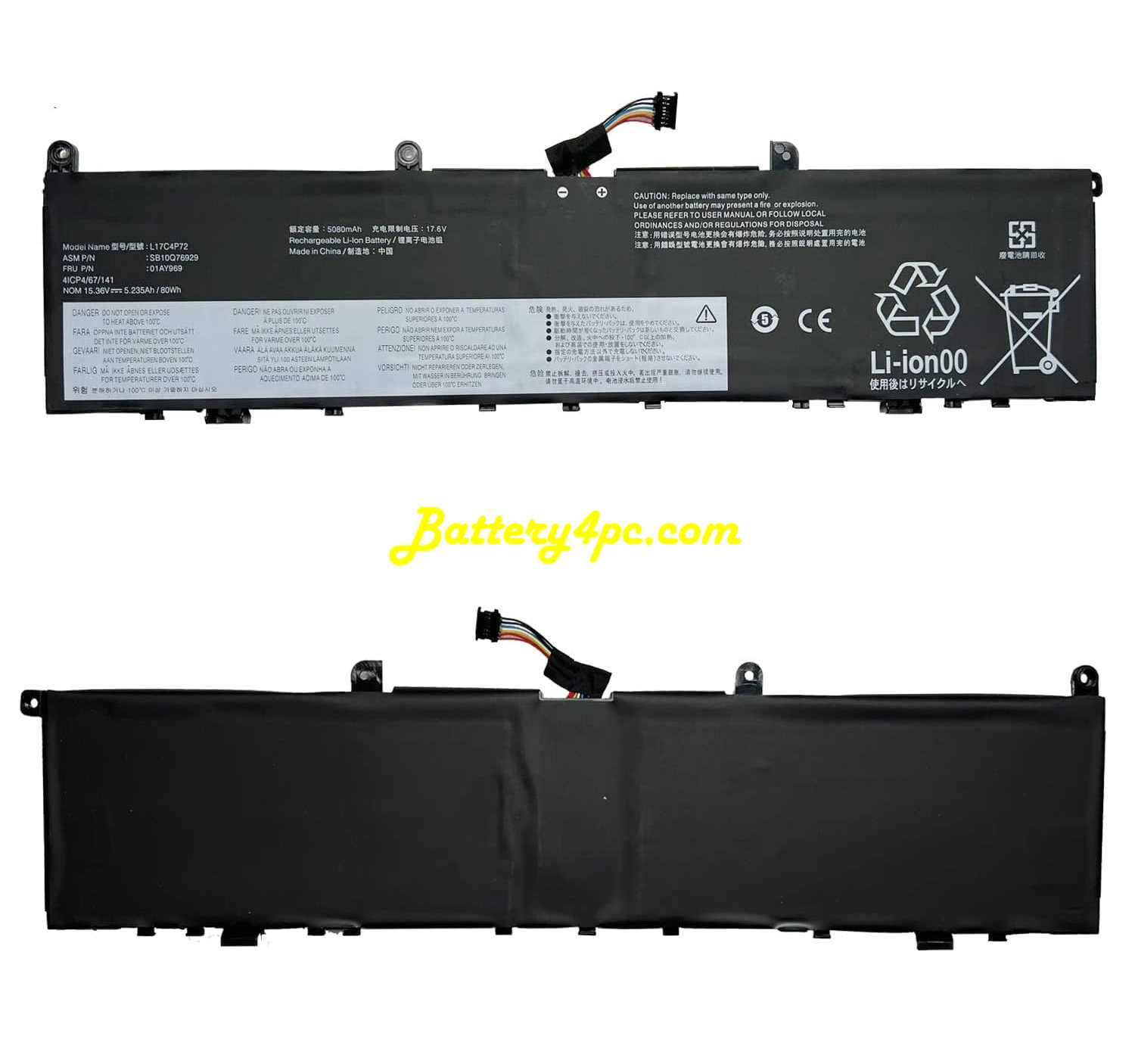 Model: L17M4P72 Voltage: 15.36V Capacity: 80Wh/5235mAh.