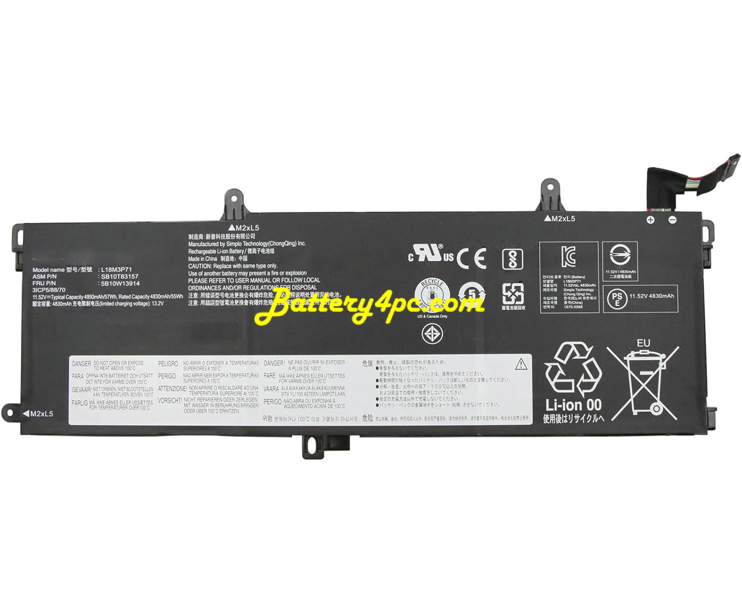 【Battery Model】SB10K97650; Voltage:11.52V; Capatity:57Wh 4950mAh 3-Cell